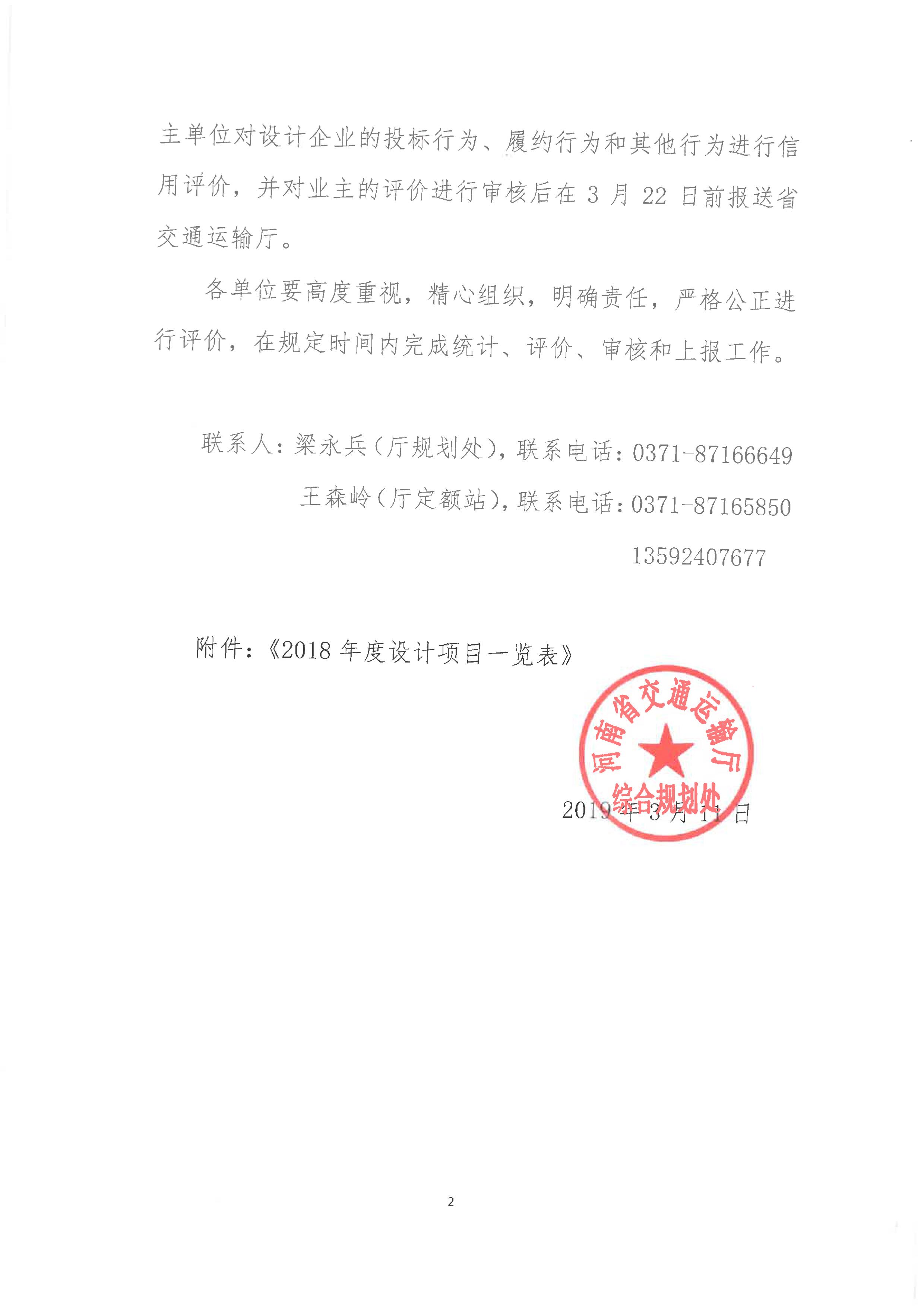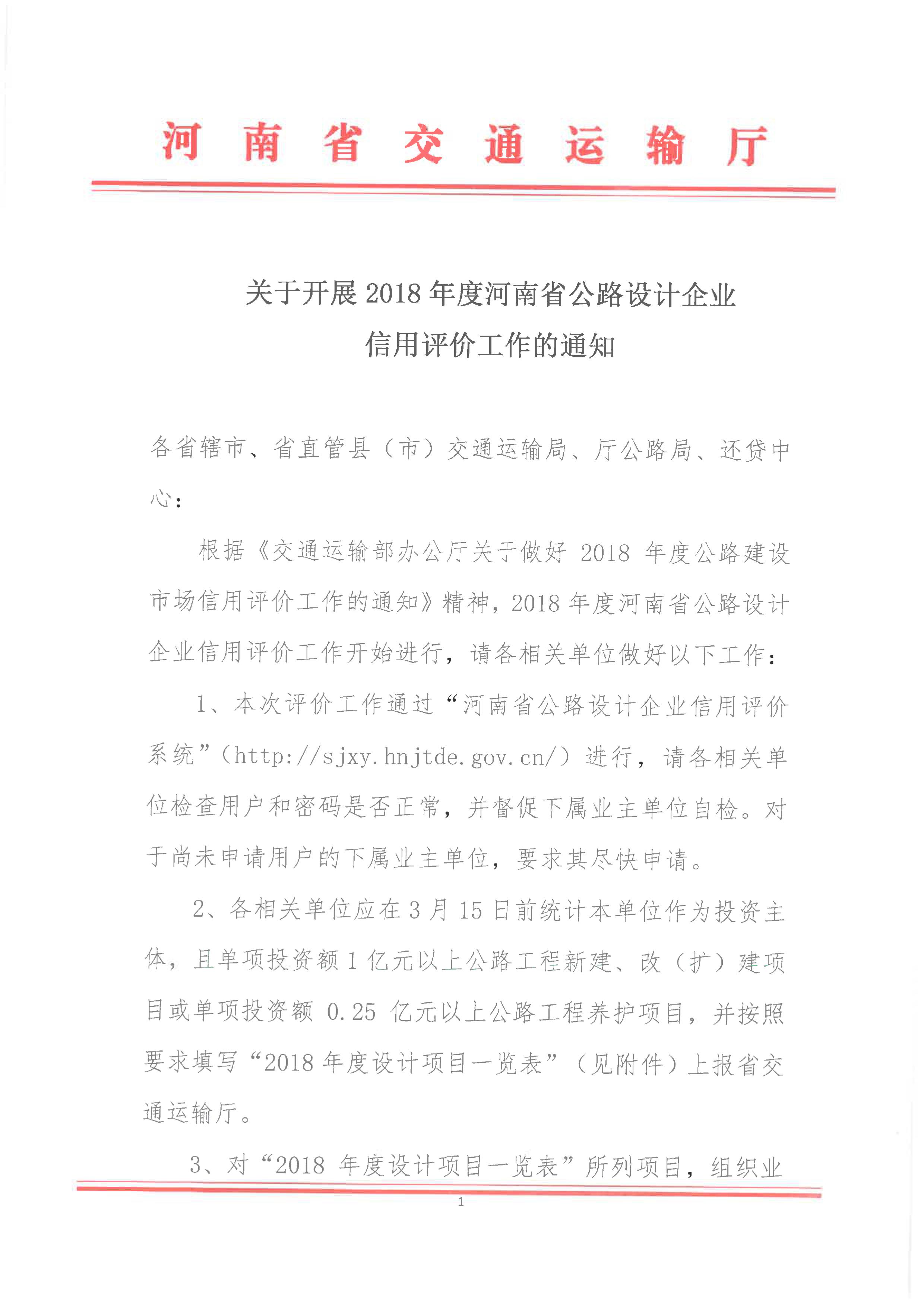 关于开展2018年度河南省公路设计企业信用评价工作的通知