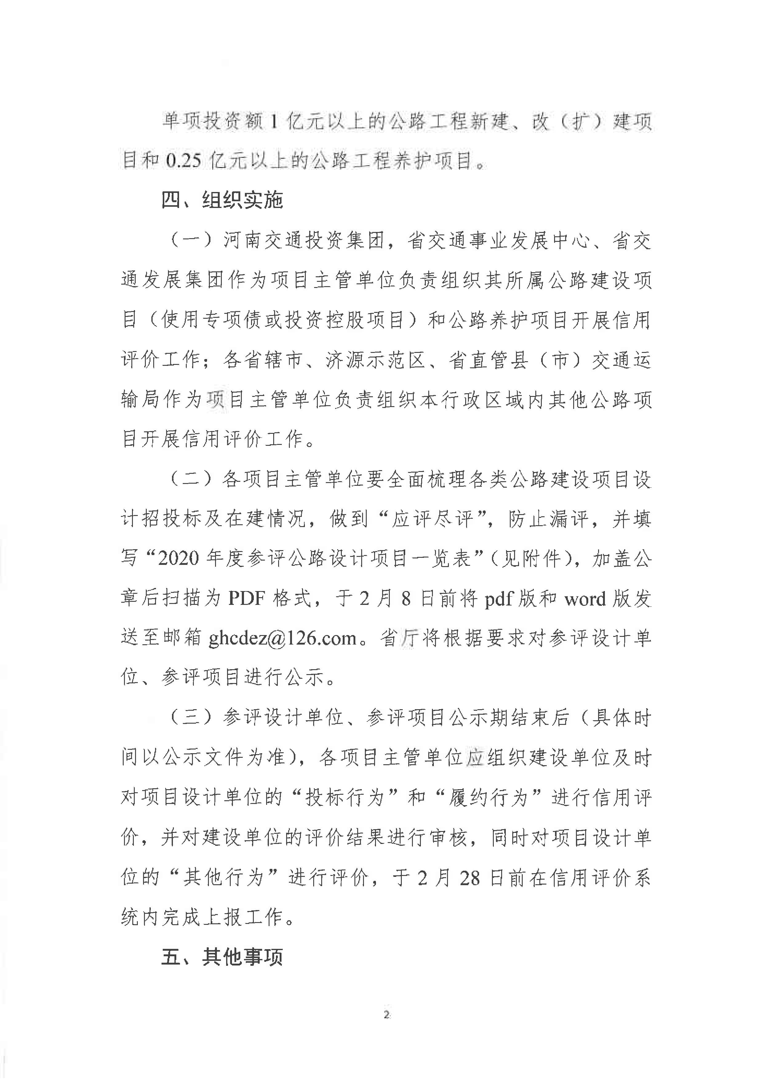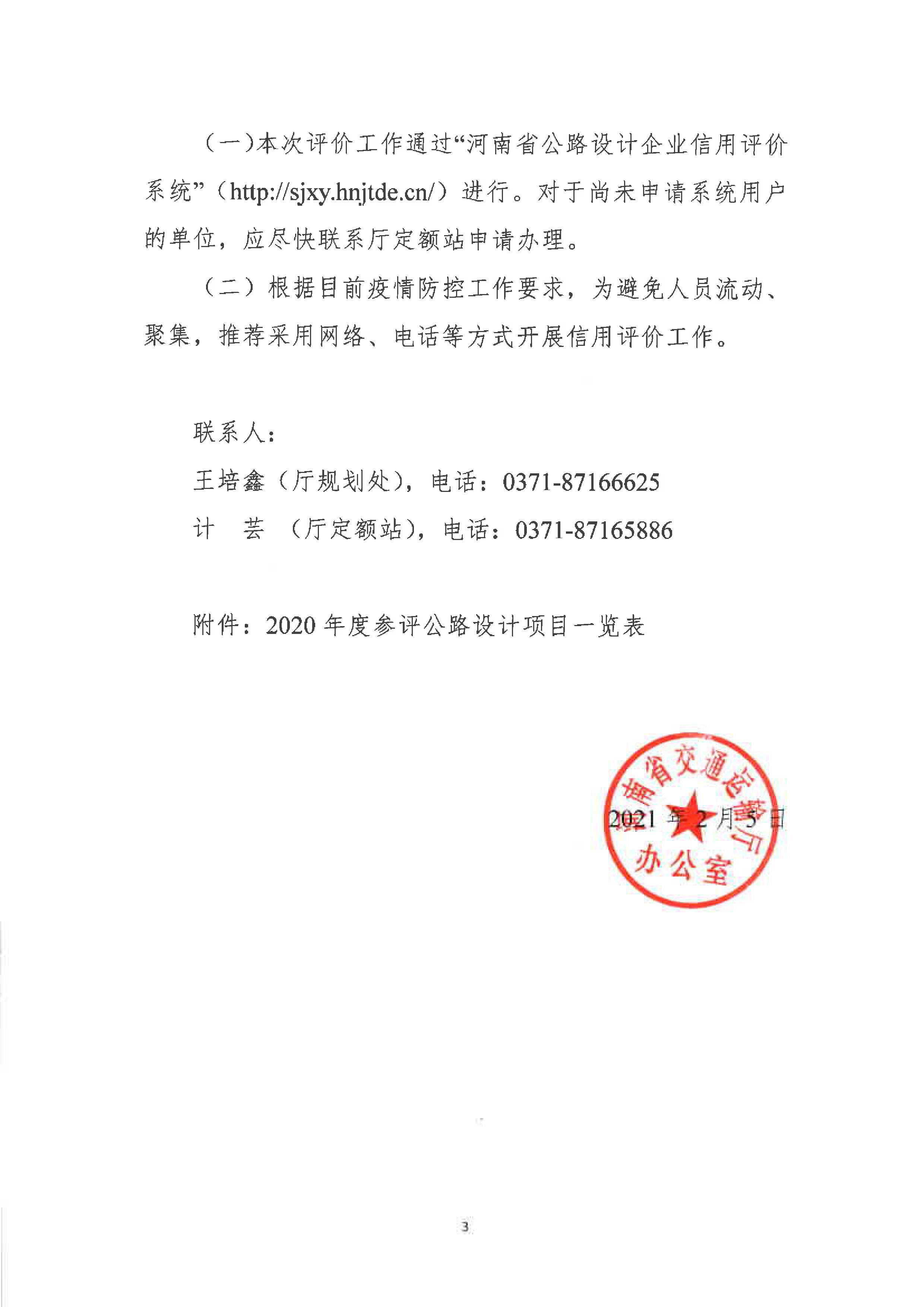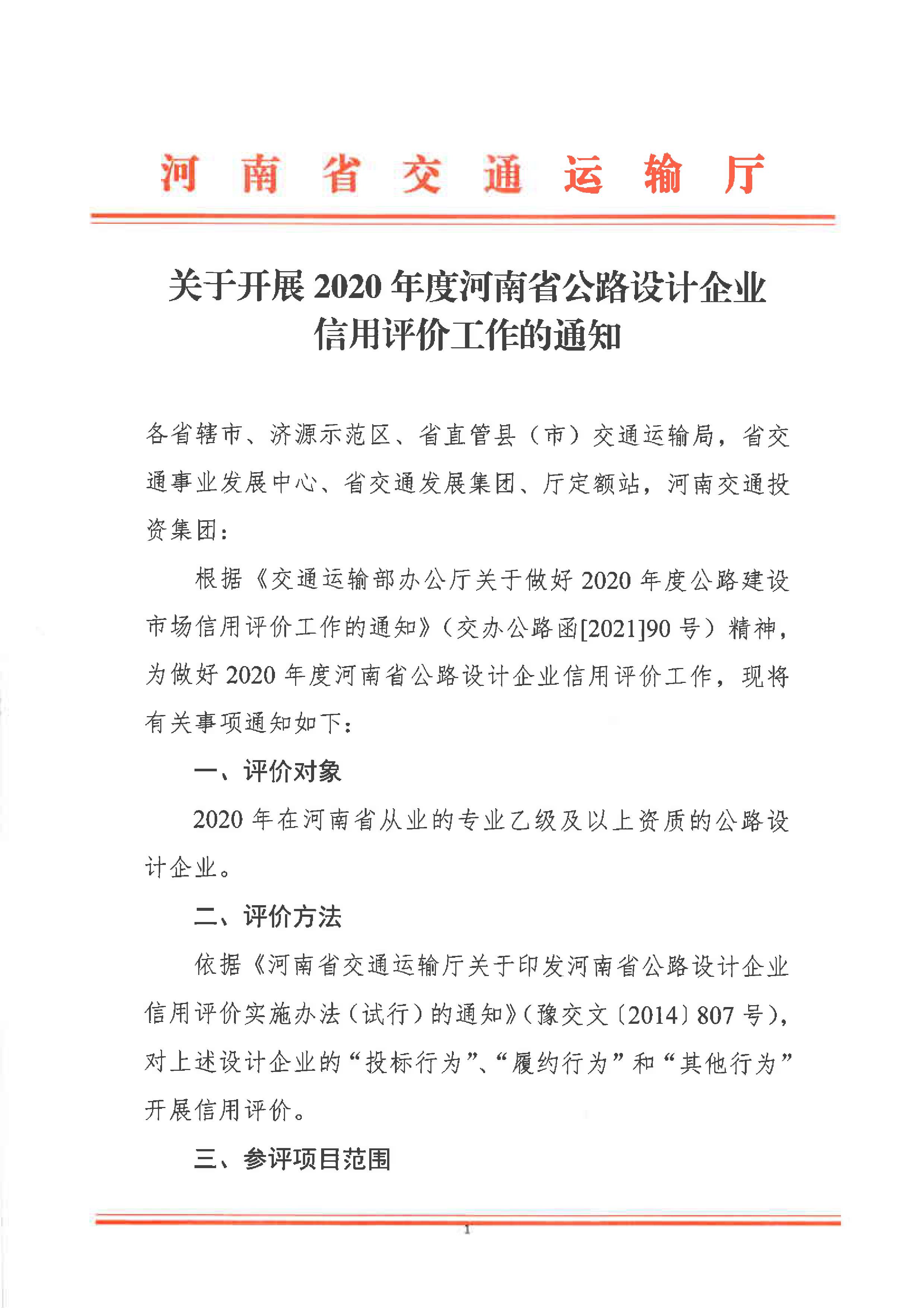 关于开展2020年度河南省公路设计企业信用评价工作的通知
